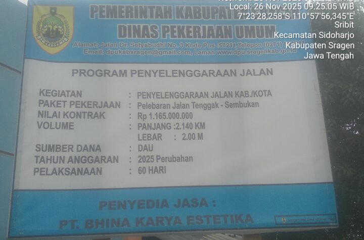 Veritas,Sragen — Proyek pelebaran jalan di ruas Tenggak–Sembukan, Kecamatan Sidoharjo, Kabupaten Sragen, kembali menuai...