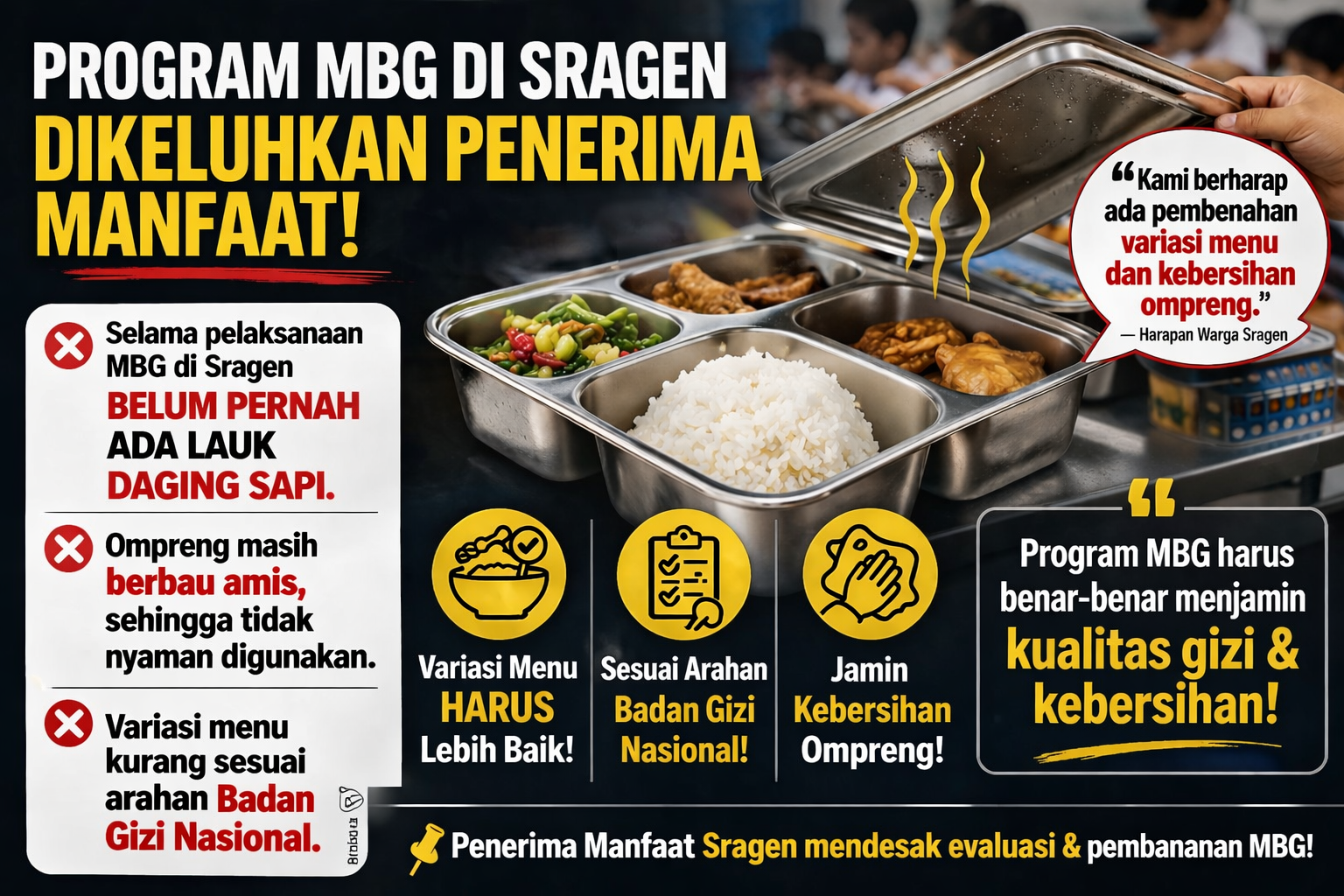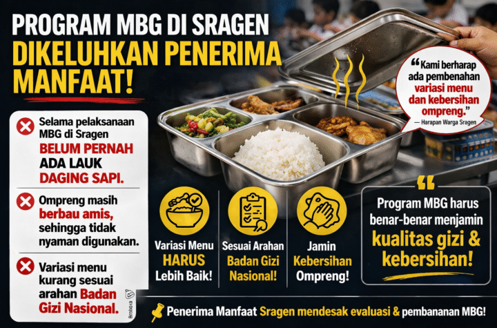 Veritas,Sragen-Sejumlah penerima manfaat menyampaikan keluhan terkait menu makanan yang dinilai kurang variatif selama pelaksanaan...