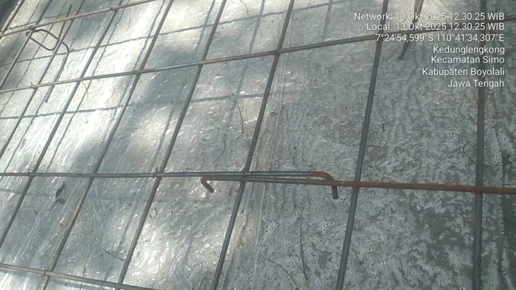 Pantauan lapangan pada 13 Oktober 2025 memperlihatkan kondisi jarak antar ti’dar (dowel) yang tidak beraturan dan diduga jauh dari ketentuan standar PU.