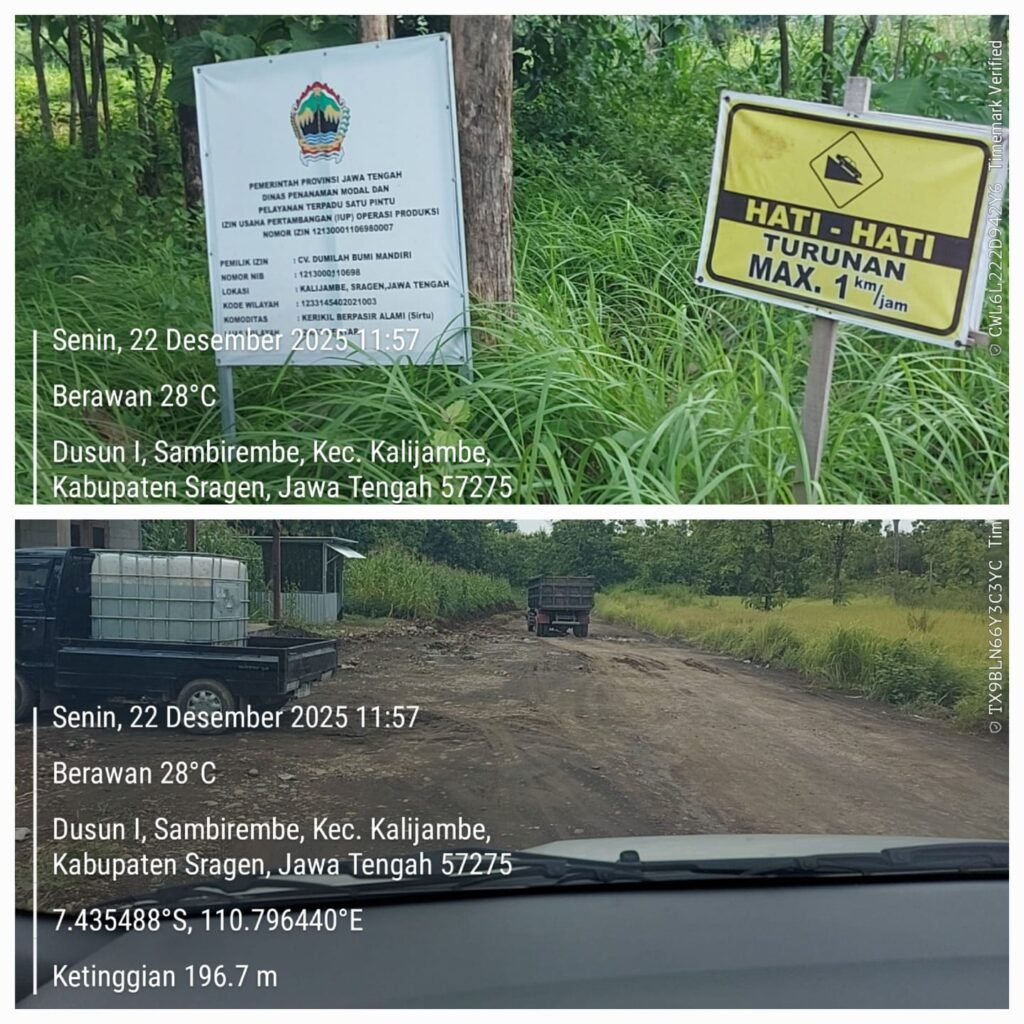 Veritas,Sragen — Aktivitas pertambangan kerikil berpasir alami (sirtu) di Kalijambe, Kabupaten Sragen, memantik penolakan terbuka dari warga. Bukan semata soal tambang, melainkan cara operasi dijalankan: tanpa sosialisasi, tanpa persetujuan warga, dan diduga merambah tanah kas desa.