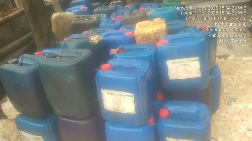 Veritas,Jepara — Pagi itu, Senin 1 Desember 2025, Desa Kedungmalang seperti biasa terbangun oleh suara kapal yang disiapkan untuk melaut. Namun di sebuah sudut desa pesisir itu, atmosfernya tak sama. Bau solar menyengat menusuk hidung bahkan sebelum tim investigasi Veritas Indonesia News menurunkan peralatan.